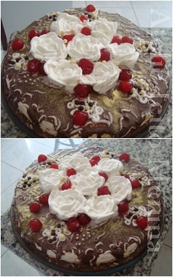 Torta Holandesa Decorada com Rosas de Chantilly e Cereja